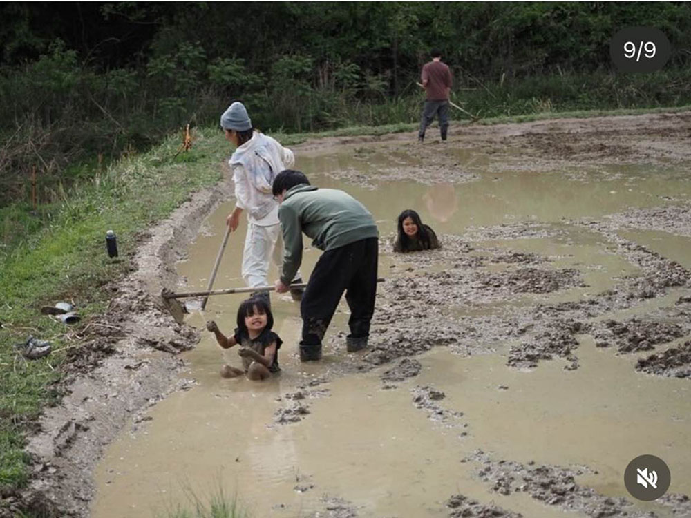 昼真っ盛りで飽きた子供たちは、田んぼにダイブ!!!
