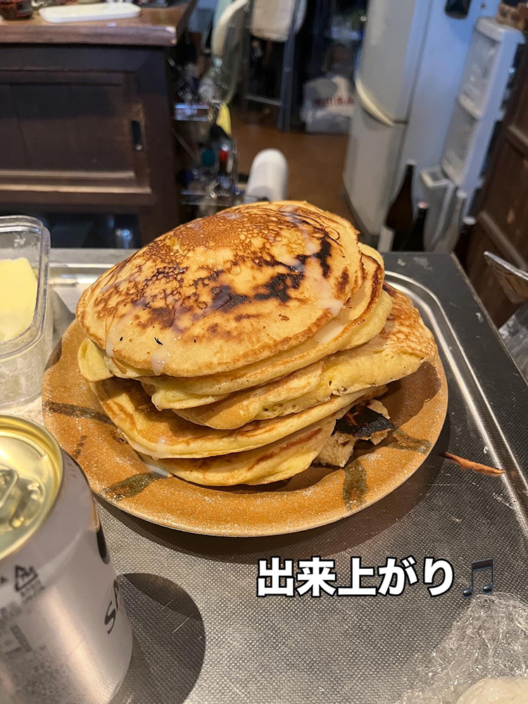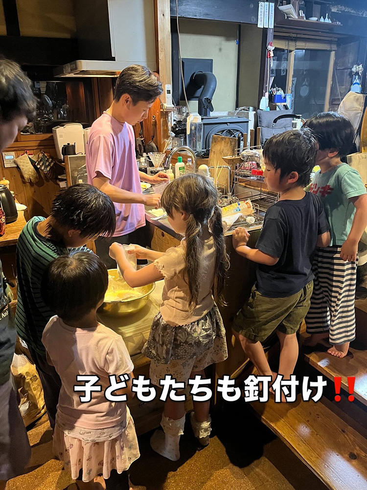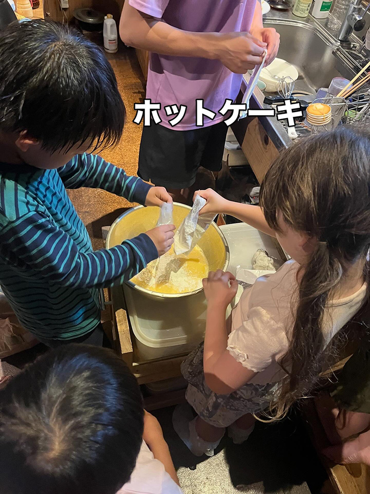 カレーや唐揚げで腹を満たしたあと、子どもたちはホットケーキ🥞作り