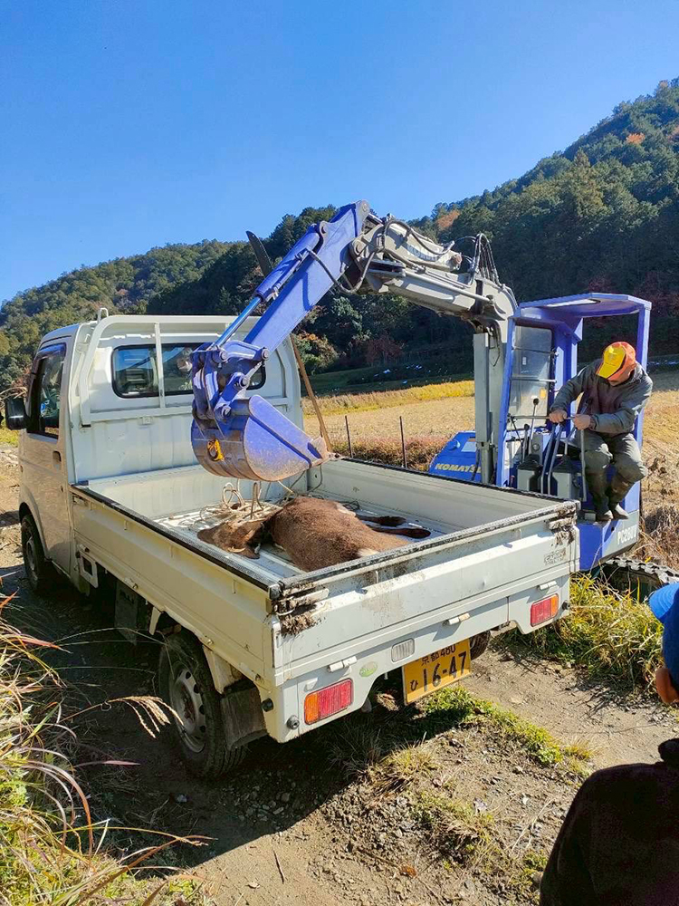 そのあと、ワナにかかっていた鹿を仕留めるところと解体作業処理を皆で静観。