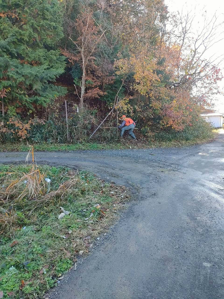 まずは稲木干しの片付け。
