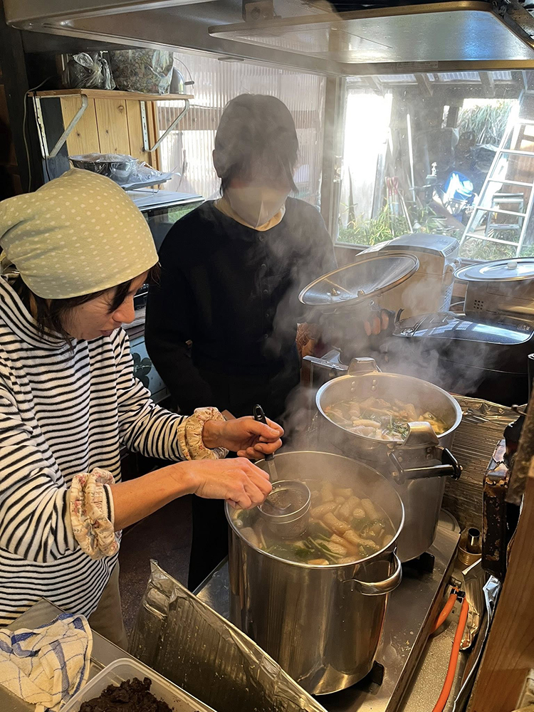前日に鹿が罠にかかっていたこともあり、午前中は鹿の解体班、汁物調理班、お餅つき班の3つの班に分かれて作業を行いました!