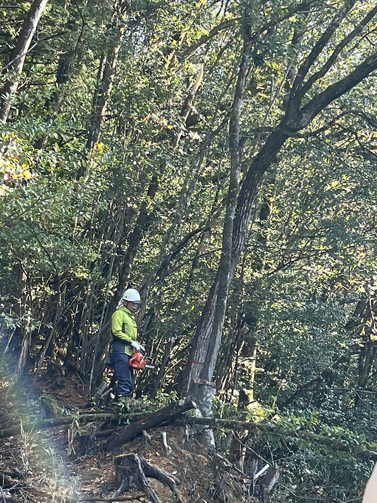 切る木を確認し、中島さんが慎重に周りを気にしながら時間をかけて作業を進めました。