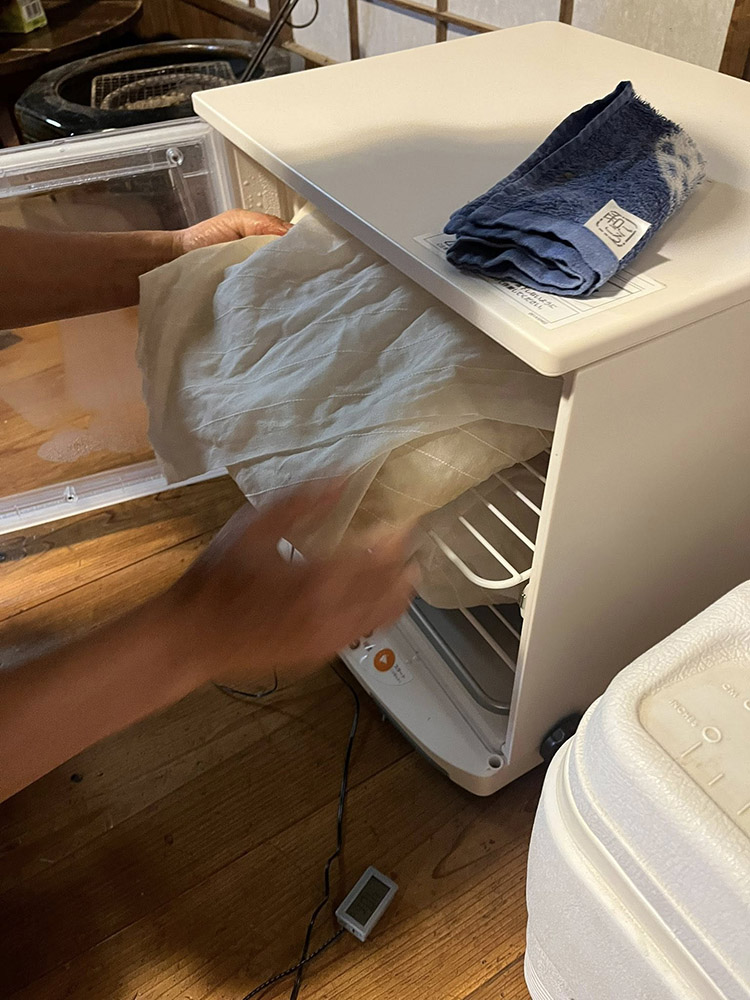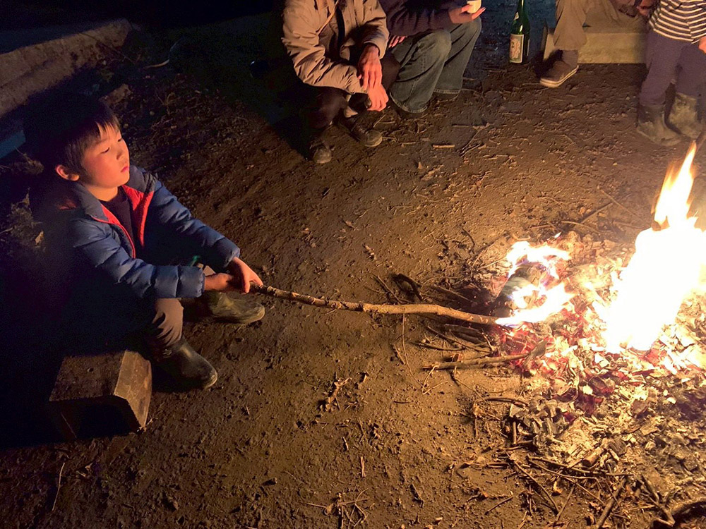 談話して、ついつい時間を忘れていた水田さんと、麹をかき混ぜて…夕食おしまい〜