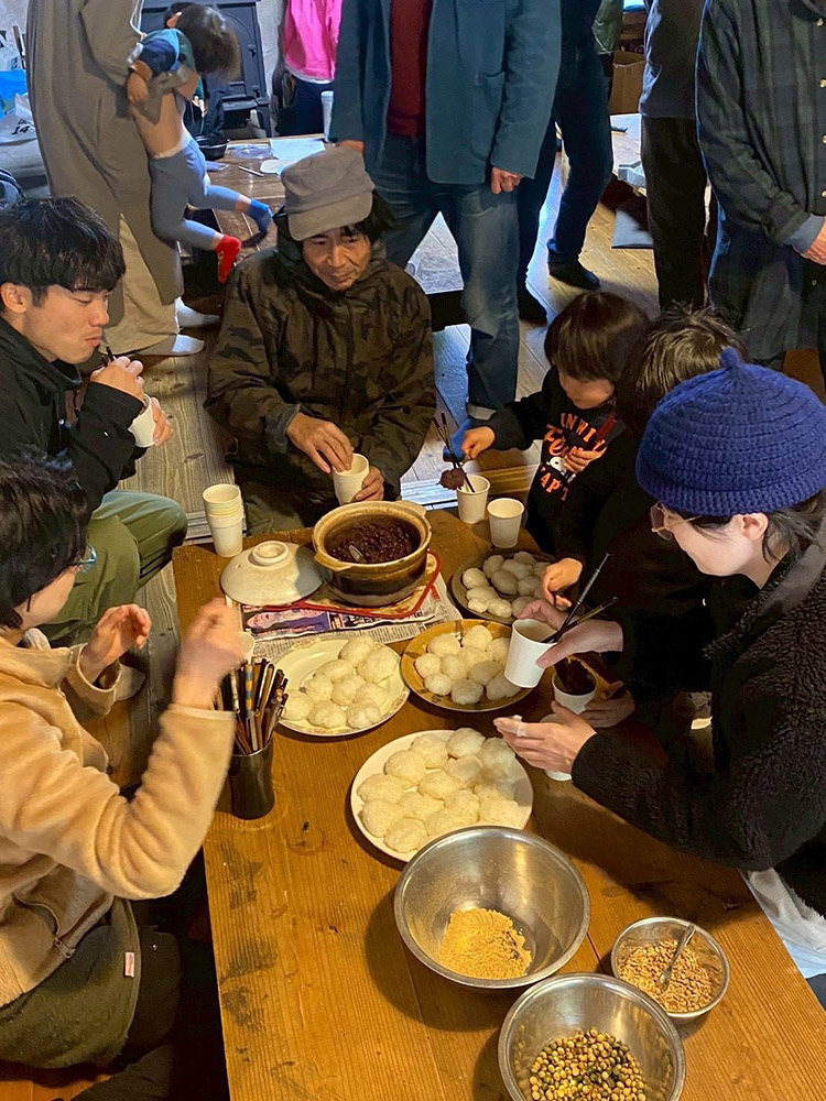最後は、このきな粉や炊きたての温かいあんこをのせたおはぎをいただき、みんなで団欒の時間を過ごしました。自然を身近に感じられる貴重な体験を、温かな人たちに囲まれて味わえた、ちいたにの良さを改めて実感した一日でした。
