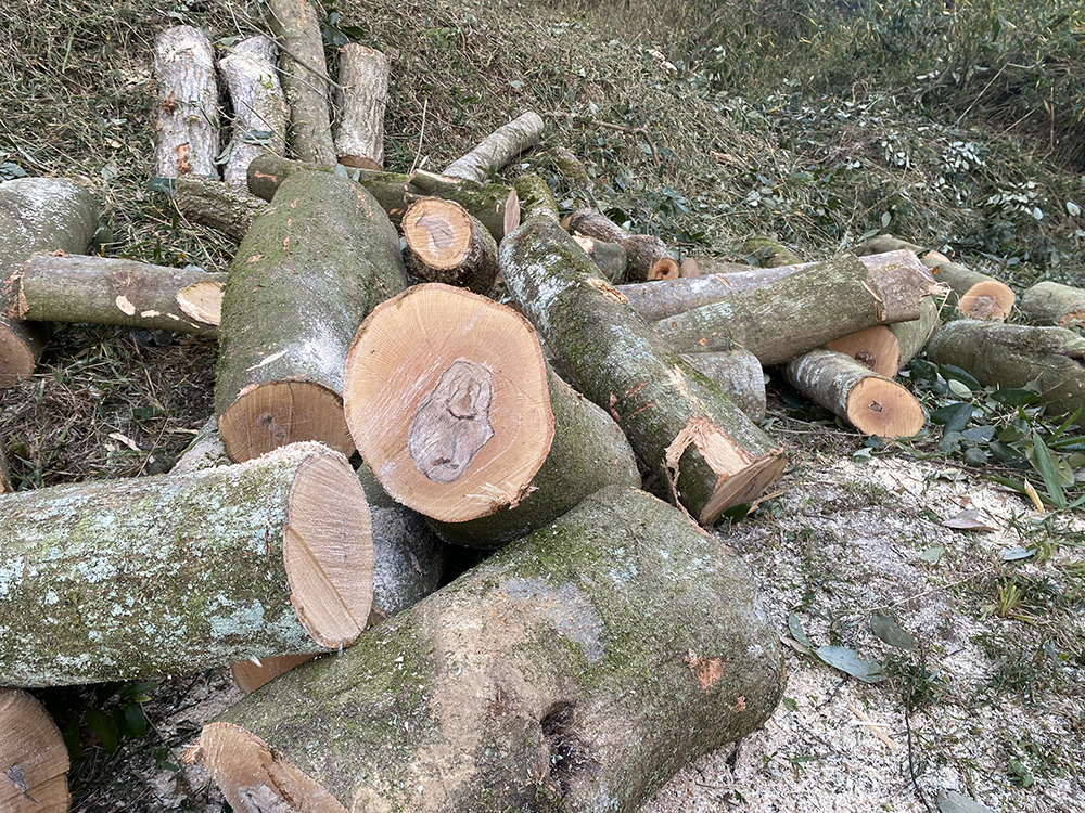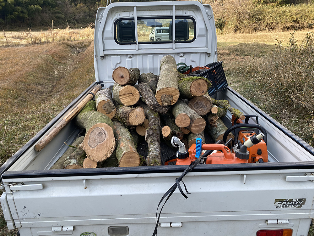 木を伐採して椎茸のホダ木と、後で割って薪にする為の玉木を作りました