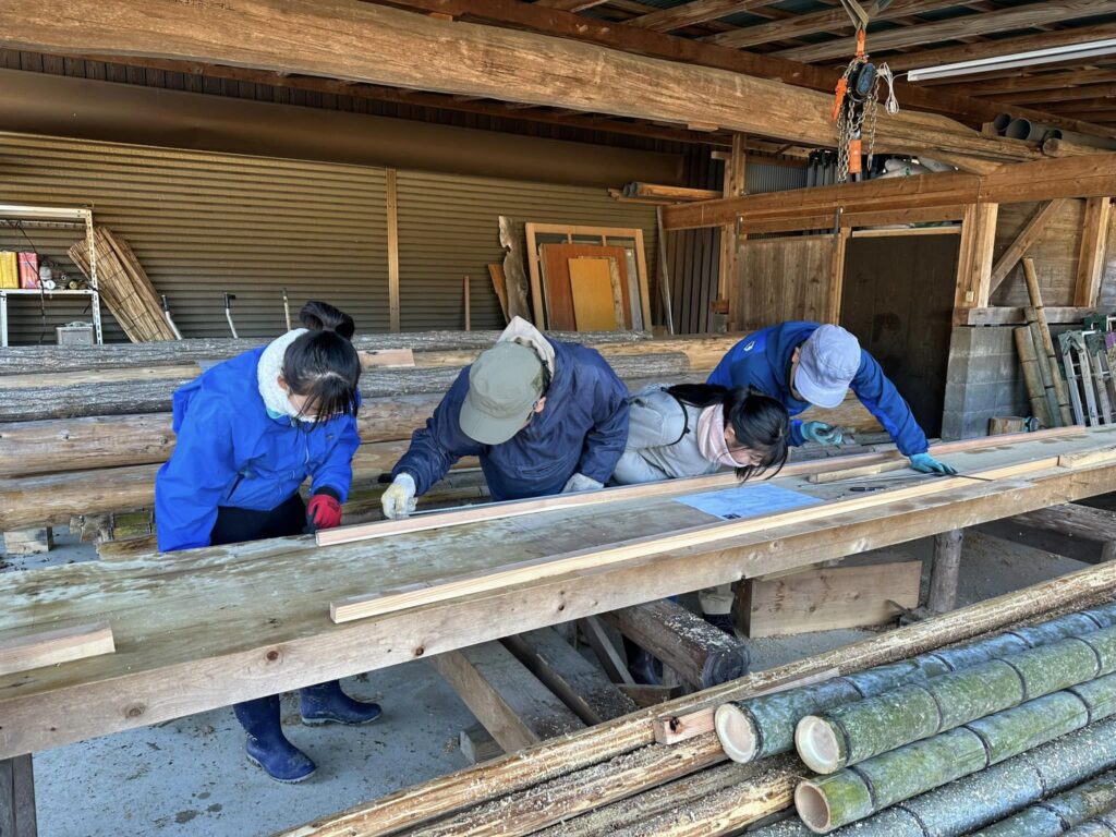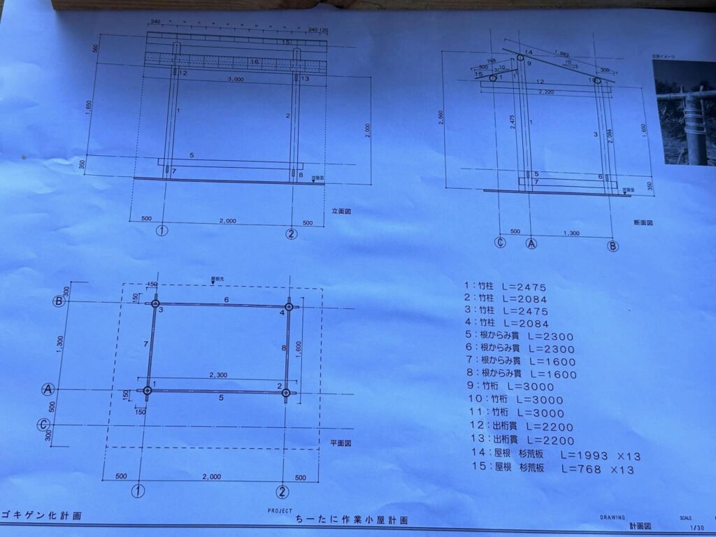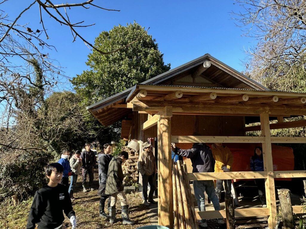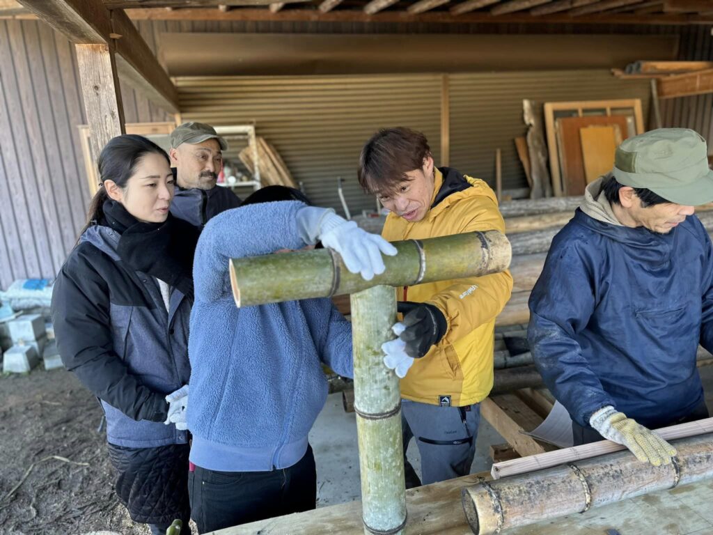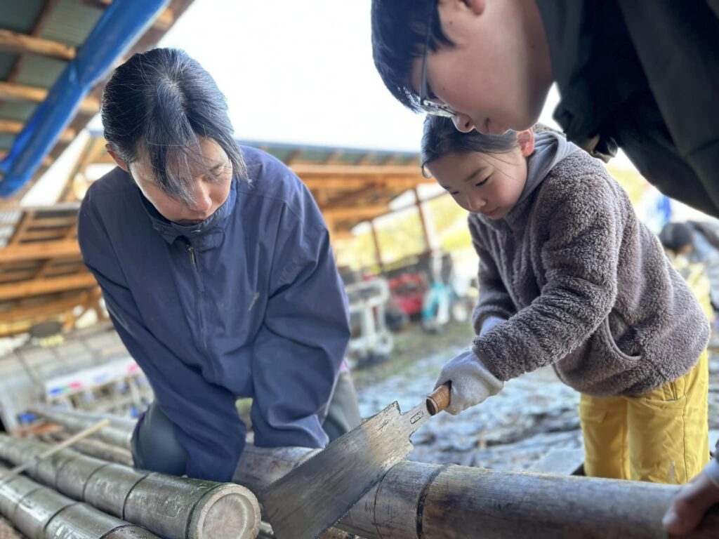 昨日仕込んだ麹の世話をしてから竹小屋作りをしました。